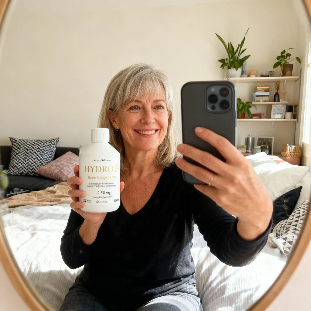 Jag har tagit hydro13 i snart tre månader. För någon dag sedan sa min sambo till mig..du ser annorlunda ut, så fin, pigg och glowig ut i ansiktet. Jag ser själv också att huden blivit fastare, inte lika plumpig som förut.